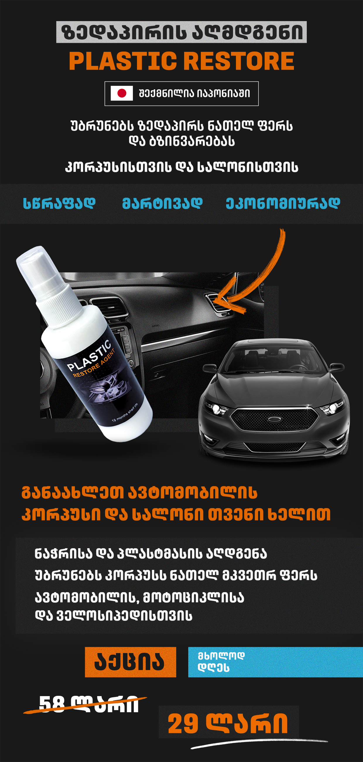 არც ისე დიდიხნის წინ მეგობრები განვიხილავდით ამ საპრიალებელ საშუალებას და გადავწყვიტეთ გვეცადა. მოკლედ, Plastic recovery საუკეთესო საშუალება აღმოჩნდა, ჩემი ძველი ნისანი ახალივით გამოიყურება!